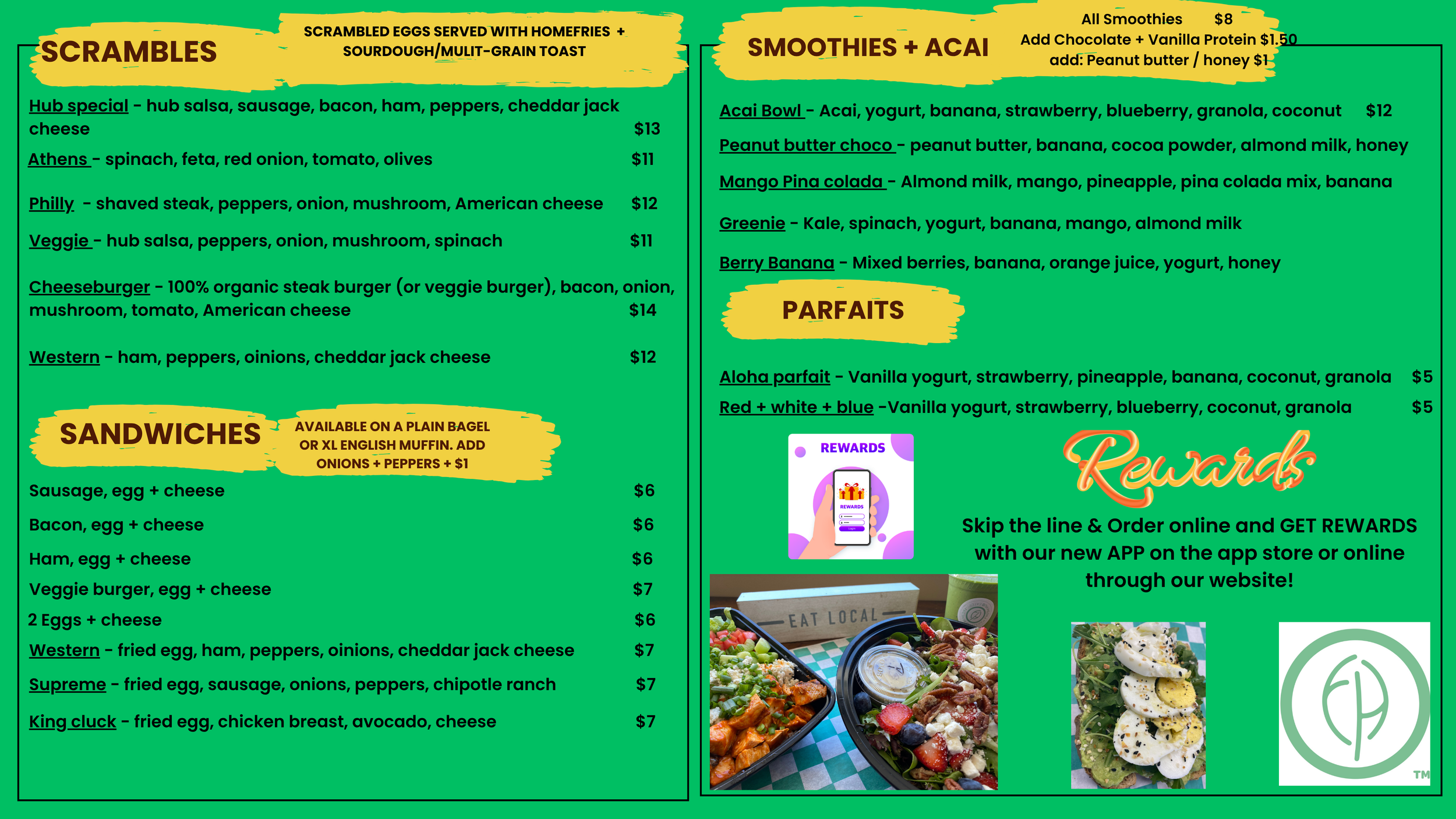 Now Franchising Fresh hub Eatery Salem NH breakfast lunch catering food fresh delivery ezcater doordash fresh prep meal prep smoothie burrito rice bowl panini salad acai steak bomb