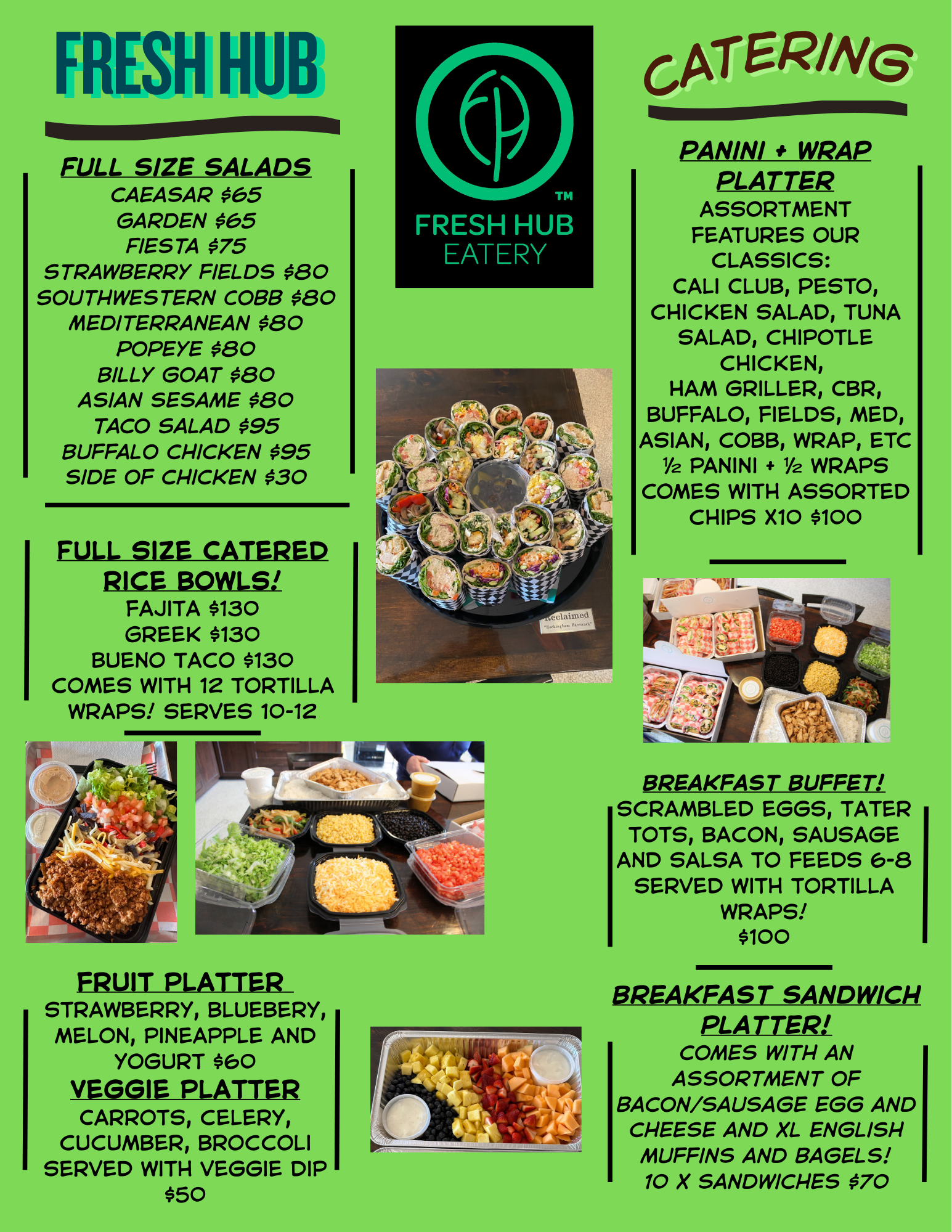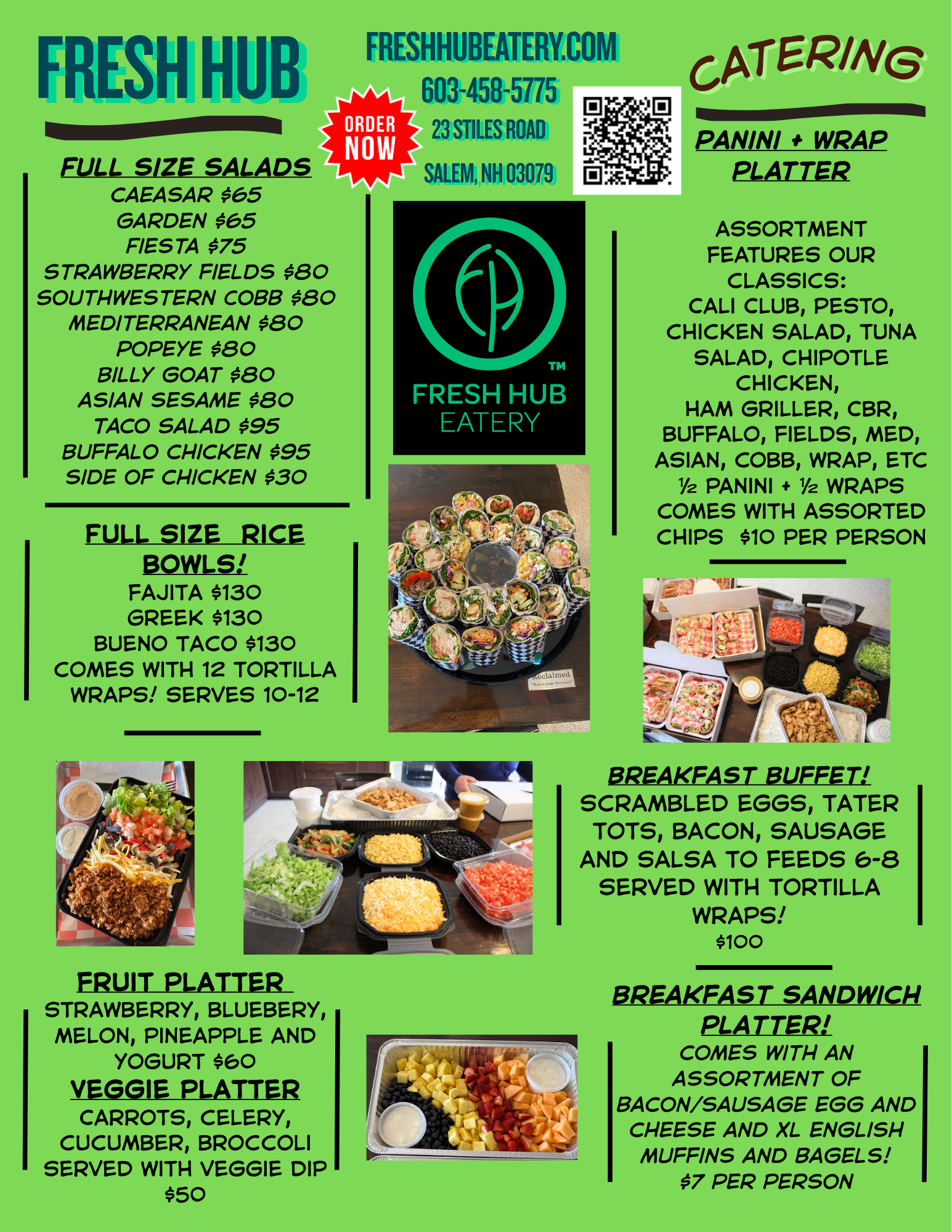 Now Franchising Fresh hub Eatery Salem NH breakfast lunch catering food fresh delivery ezcater doordash fresh prep meal prep smoothie burrito rice bowl panini salad acai steak bomb